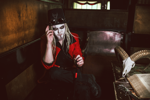 I have liked circus, carnival and masquerade aesthetics and atmosphere almost as long as I remember. They have always appeared to me as grotesque and absurd instead of what they probably should’ve represented, and especially the dark, deranged, and twisted sides from these has been the ones that has spoken to me deeply. Carnivalesque, being a literary or atmosphere mode which subverts the assumptions of the dominant style or atmosphere through humor and chaos, comes very natural for me somehow as I always want to challenge the structure of reality, either by clowning or just being dead serious. But I must mention Mikhail Bulgakov’s novel The Master And Margarita being probably the biggest influence for me in this matter, both in aesthetics and atmosphere, and I have not really been shy about paying tributes to it with the works of KING SATAN ever since the debut album. Also, some of the Fjodor Dostovyeski’s, works and Anton LaVey and original Church Of Satan aesthetics, as what else those grotesque and tongue-in-cheek ritualistic re-enactments were but part of carnivalesque manifestation? They were very serious too, but also very carnivalesque which are not contradicting each other of course! Very powerful stuff. The movies of Terry Gilliam and Alejandro Jodorowsky together with Monty Python, Hunter S. Thompson, Batman’s Joker and Beetlejuice have played a big part of influencing this carnivalesque side for me as well.