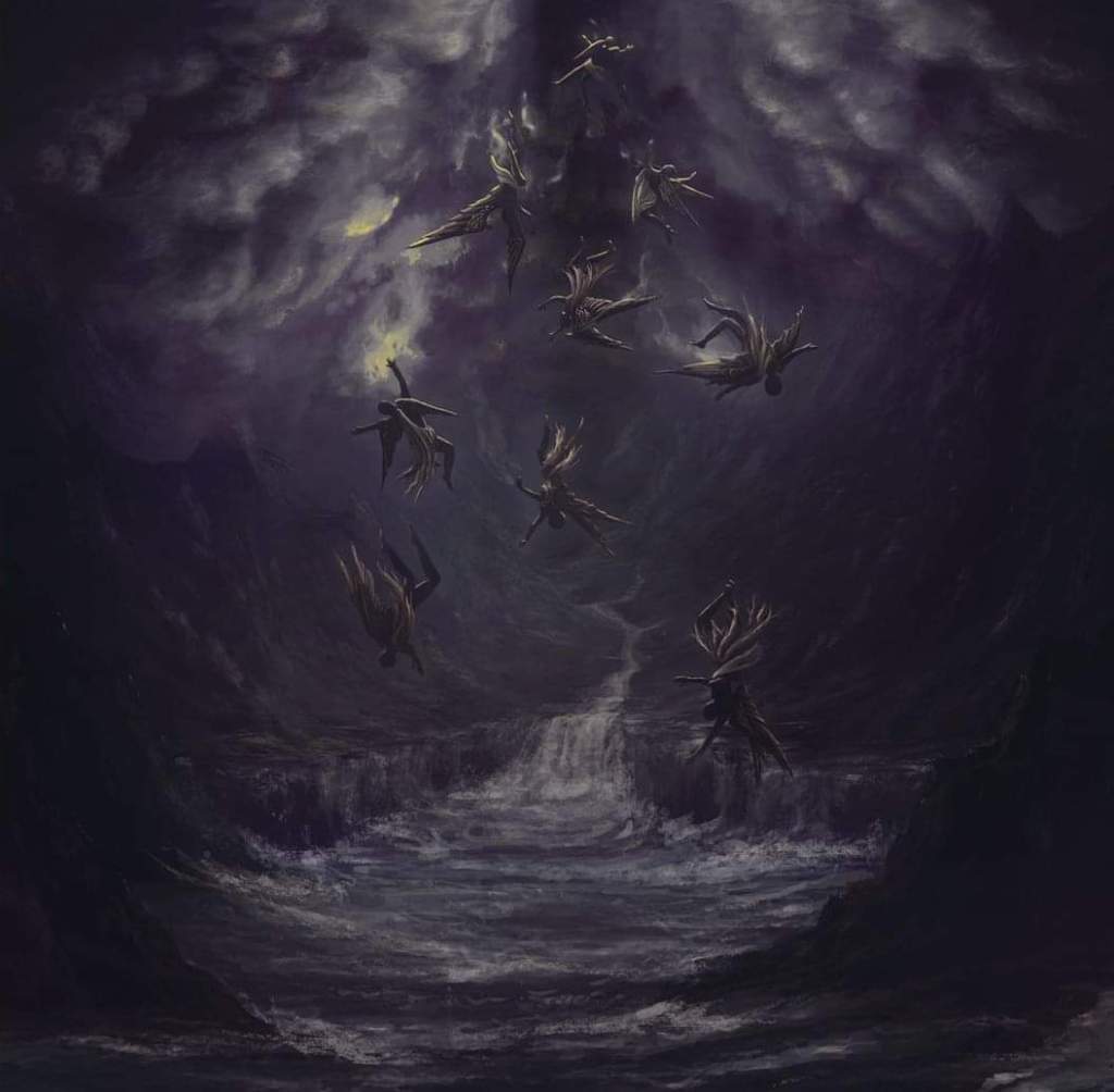 A solemn initiation proceeds in the arrangements of “Luciftias,” and various sung dynamics elevate the grandeur around a blasting glimpse into madness, which “Sacrosanct Pyre” soon liberates fully in a wrathful torrent. Intricate and malign riff designs are gathered alongside unpredictable percussive shifts, with a vast materializing abyss reflected as structures from both elements expand indefinitely, and the intensity only subsides enough to highlight infernal praises and invocations. My experience would normally attribute the degree of wizardry in these courses to certain death metal tendencies, but their blackness is asserted intriguingly when fleeting arpeggiated glares emerge in the mix. Similarly tortuous maneuvers reverberate “Into Eerie Catacombs,” where dissonant shapes are rampant among the virtuosic storm, and infusing the frenzy with slower grooves draws focus on a sinister eminence, along with clean strings dissipating to the dread of choirs before “Satanastasis” takes hold. The continued influence of steady rhythms brings out its cold mayhemic auras, and they compound the vile priestliness of vocals while traversing notable developments, including pointed melodies that culminate amid other detailed currents raging through perpetually dim regions.