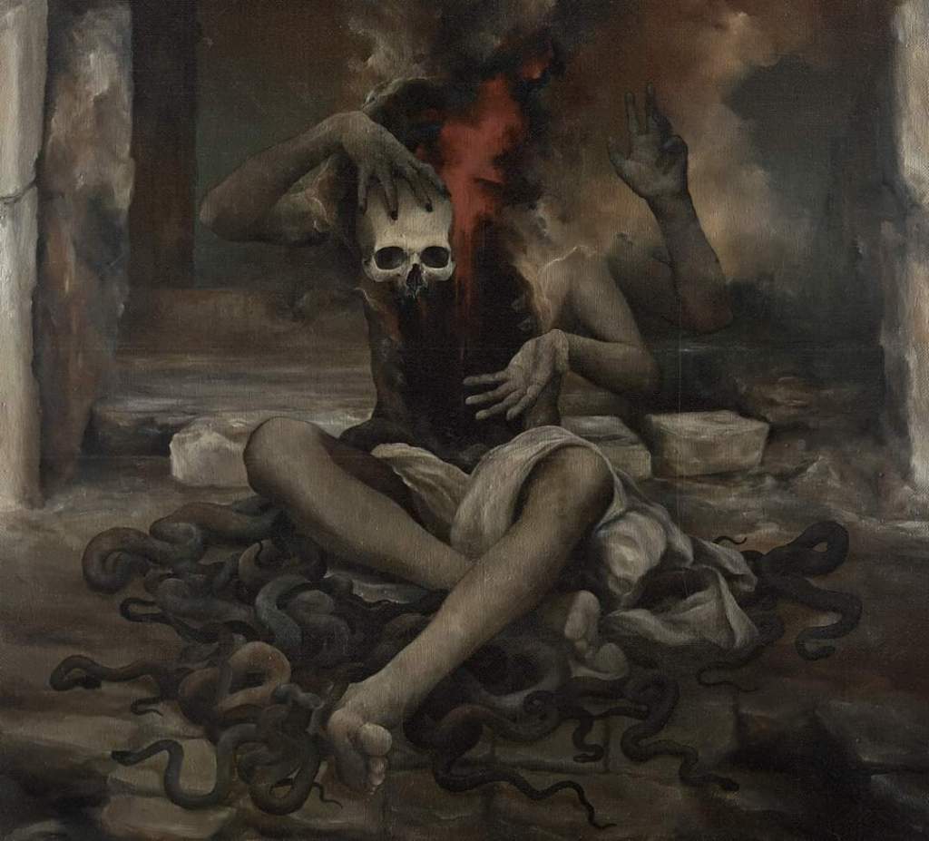 Atmosphere is centered instrumentally on “Phaneron Engulf,” where some masterly drumwork is observed in ritualized and technical combinations unfolding around tranced-out fret shapes, and those features transfer to the title track alongside others which synchronize into an infectious groove. Its progression through ceremonial passages and gatherings with grander forces that culminate in a frenzied technical exhibition make it an undeniable highlight, and “Exultation of Ceaseless Defiance” follows as the instinctive finale with a lethal synthesis of the elemental collective. The section with drums striking purposefully in time to a tremolo descent has a notable impact, and the prevailing riff dissonance leaves an abyss wide open for hellish emanations to triumph. Antinomian Asceticism displays a continued sharpening of BARSHASKETH’s craft, and its fusion between unsettling tones and a harsh attack forms varied and engageable structures, which are enhanced by doses of ambient ritual to forge a vicious entry for the year.